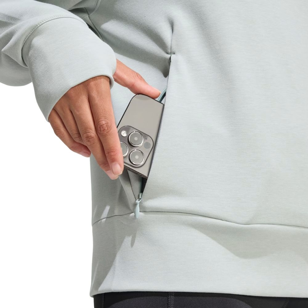 La sudadera adidas es una prenda versátil diseñada para ofrecer comodidad y estilo tanto en entrenamientos ligeros como en el día a día. Su diseño moderno de corte cropped aporta un look deportivo actual que se adapta fácilmente a outfits casuales o deportivos.
