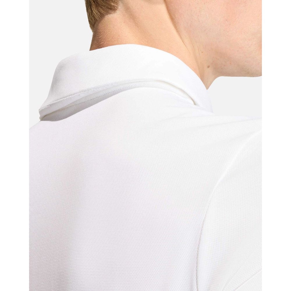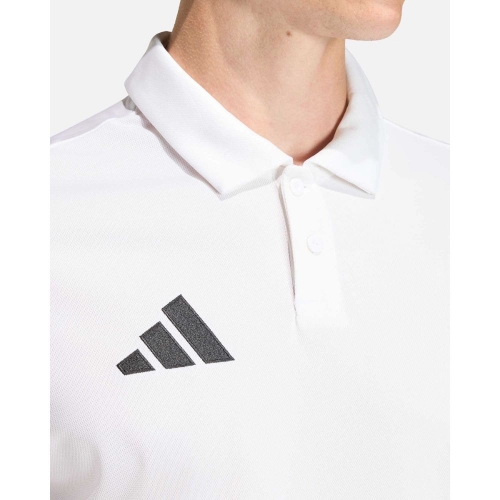 Su diseño incorpora detalles icónicos de adidas, como el logotipo bordado y un acabado limpio en color blanco con contraste, aportando un estilo moderno y atemporal. El cuello con botones añade un toque clásico que lo convierte en una opción perfecta tanto dentro como fuera del terreno de juego.