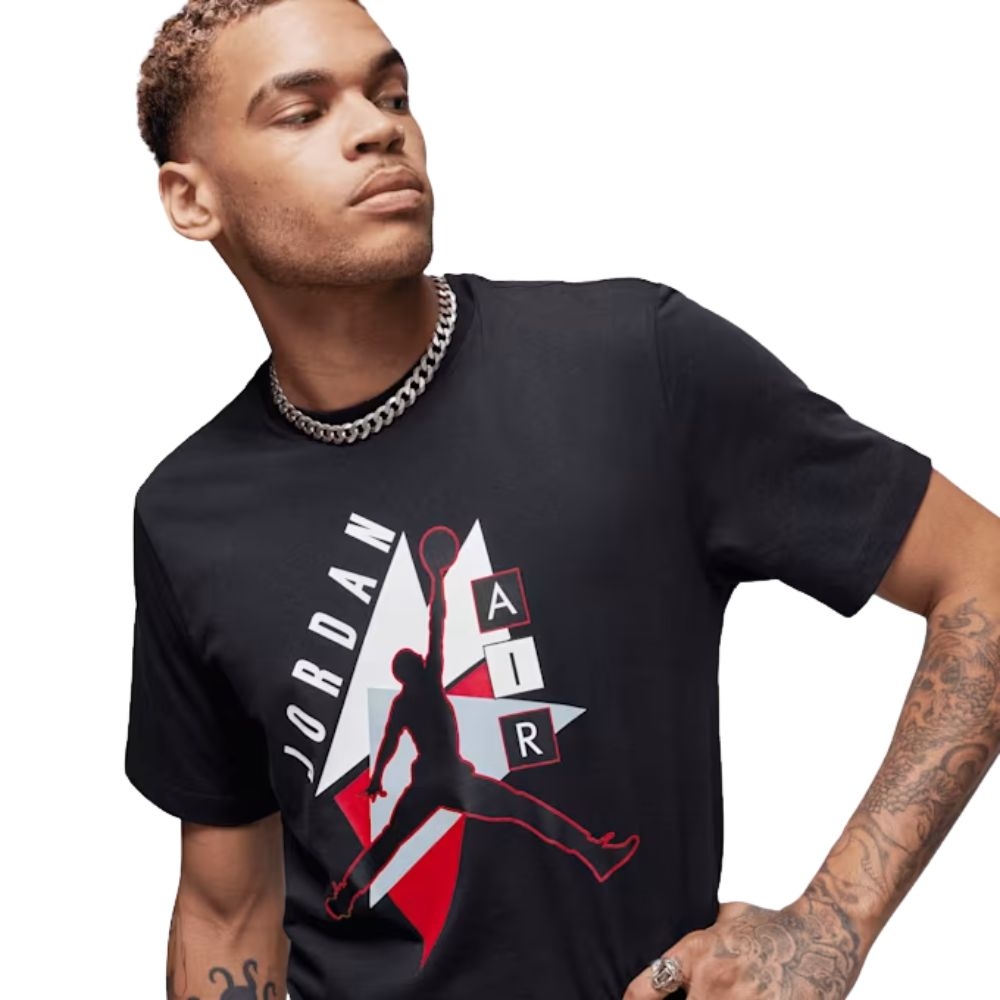 Confeccionada en algodón 100%, ofrece un tacto suave y una gran transpirabilidad, ideal tanto para uso casual como para actividades ligeras. Su corte clásico con cuello redondo garantiza un ajuste cómodo, mientras que el estampado gráfico Jumpman aporta un toque distintivo y reconocible al instante.